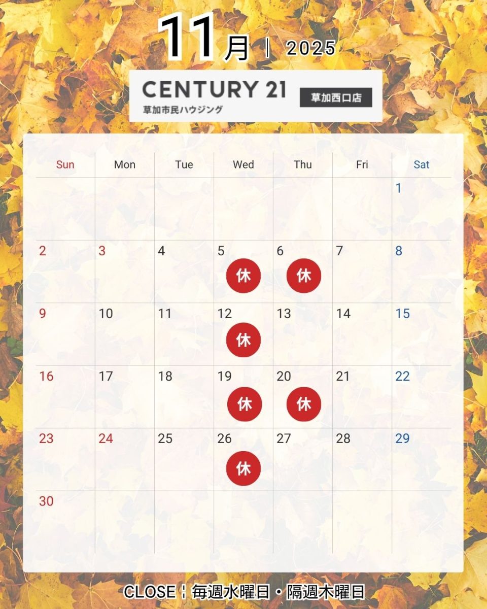 ■休業日2025年11月6日(木)、20日(木)※なお、毎週水曜日は定休日です