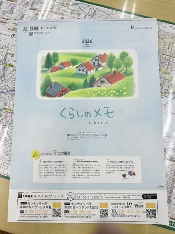 こんにちは!センチュリー21草加市民ハウジング 草加西口店の藤代です。 弊社の2026年版カレンダーが出来上がってまいりました! 1月はじまりのカレンダーになります。おうちの壁などにかけて使うタイプです! …