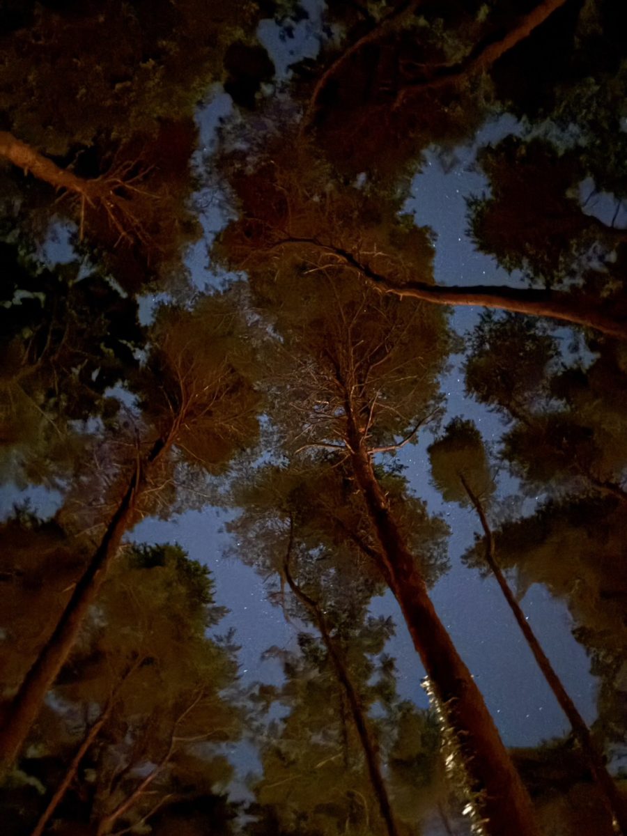 日が暮れて夜になり木の間から見える星たちを眺めてました🌟