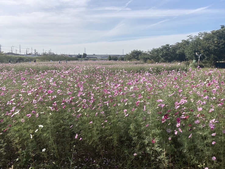 中川やしおフラワーパークでは毎年コスモスが植えられ、