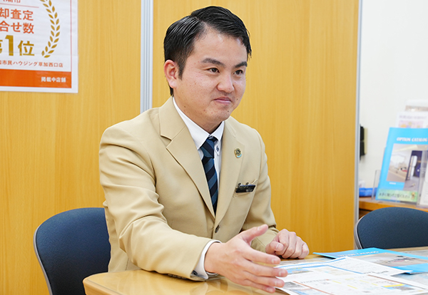 そんな中、草加市民ハウジングで一戸建てを購入した友人から「家を紹介する仕事ってすごいよ。お前もチャレンジしてみたら?」と勧められました。業界未経験で不安はありましたが、思い切って面接を受け、採用していただきました。